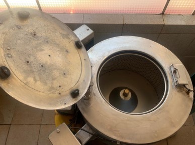 1 Máquina centrífuga de roupas industrial hospitalar, marca LAVEXMIL modelo PEL-15, série I-2456, com capacidade para 15 (quinze) quilos, ano 1998. Em bom estado de conservação; máquina completa, com motor. Obs. Funcionamento não demonstrado.