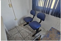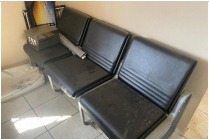 32) Longarinas secretária com estrutura metálica e assento estofado, sendo: 2 unidades com 2 lugares (cor azul), 1 unidade com 3 lugares (cor azul) e 1 unidade com 3 lugares (cor preta). Estrutura em estado regular de conservação;