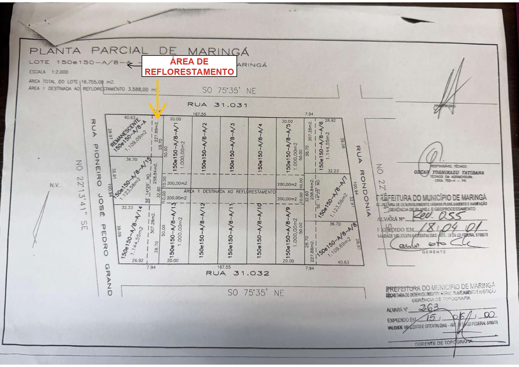 Imóvel Urbano: LOTE n. 150 e 150-A/8-A (cento e cinquenta e cento e cinquenta-A/oito-A). Remanescente, situado na GLEBA RIBEIRÃO MARINGÁ, neste município e comarca de Maringá-PR. ÁREA: 1.109,09 metros quadrados. DIVISAS, METRAGENS E CONFRONTAÇÕES: Divide-se: Com a Rua 31.031 no rumo SO 75º35’ NE com 40,63 metros; com parte do lote 150 e 150-A/8-A/1 no rumo NO 14º25’ SE com 28,70 metros; com o lote 150 e 150-A/8-A/15 no rumo NE 75º35’ SO com 36,70 metros; finalmente com a Rua Pioneiro José Pedro Grandi, no rumo SE 22º13’41” NO com 28,97 metros. Todos os rumos acima mencionados referem-se ao Norte Verdadeiro. (Conforme Av.01: ÁREA DE REFLORESTAMENTO com 227,88 metros quadrados). Matrícula nº 11.397 (antiga matrícula 67.256 do 1º Ofício de Registro de Imóveis de Maringá) do 4º Serviço de Registro de Imóveis de Maringá – PR.
